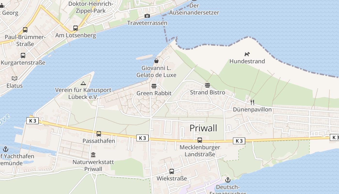 Travemünde Fähranleger ist in ungefähr 2 km Entfernung von der Unterkunft. Die nächstgelegene Bushaltestelle Poetenitzer Weg ist in etwa 10 Gehminuten Entfernung.